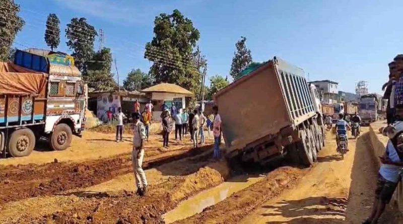 छत्तीसगढ़-महाराष्ट्र को जोड़ने वाला नेशनल हाइवे ब्लॉक, मोहला-मानपुर में अवैध रेत से लदे ट्रक फंसे