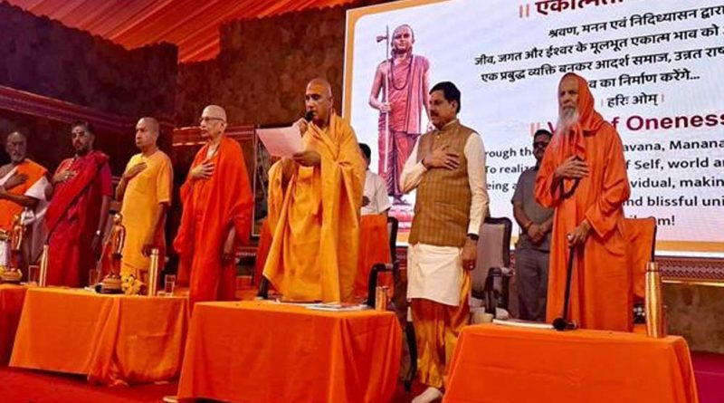 एकात्म पर्व के समापन पर मुख्यमंत्री डॉ. यादव ने पूज्य संतों का स्वागत किया। कार्यक्रम में मुख्यमंत्री डॉ. यादव ने पूज्य संतों के साथ “एकात्म धाम : एकात्मता की यात्रा’’ पुस्तक का विमोचन किया। साथ ही अद्वैत वेदांत के प्रचार प्रसार हेतु स्वामी विदितात्मानंद सरस्वती, अमेरिका एवं प्रो. व्ही कुटुम्ब शास्त्री, चैन्नई को सम्मानित किया गया। कार्यक्रम में अद्वैत जागरण युवा शिविर पर केन्द्रित फिल्म का प्रदर्शन किया गया। कार्यक्रम में पूज्य स्वामी अवधेशानन्द गिरि जी द्वारा एकात्मता का संकल्प कराया गया। कार्यक्रम में शुभम चौहान द्वारा अद्वैत जागरण युवा शिविर पर परिचय दिया गया।