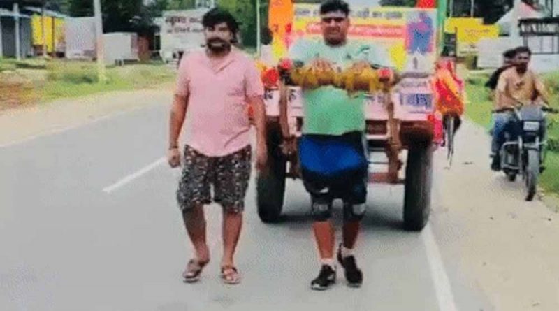 हरियाणा के जींद का पहलवान रविंद्र तोमर सीएम नायब सैनी के लिए हरिद्वार से गंगाजल लेकर निकल पड़ा है। रविंद्र तोमर पैदल बुग्गी चलाकर चंडीगढ़ स्थित सीएम हाउस पहुंचेगा। उनकी बुग्गी के आगे कोई बैल, घोड़ा या झोटा नहीं है, बल्कि रविंद्र खुद उस बुग्गी को खींच रहे हैं।