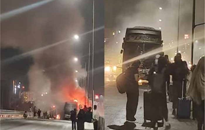 फ्लाईओवर पर चलती टूरिस्ट बस में भीषण आग, यात्रियों में अफरा-तफरी!