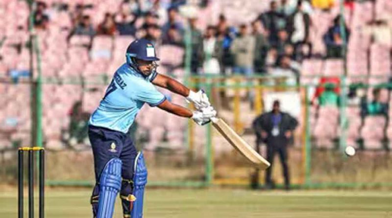 मुंबई के स्टार बल्लेबाज सरफराज खान विजय हजारे ट्रॉफी में अपनी रेड हॉट फॉर्म को बरकरार रखे हुए हैं। पंजाब के खिलाफ राउंड-7 के मुकाबले में उन्होंने 15 गेंदों में फिफ्टी ठोकी। इस दौरान उन्होंने पारी के 10वें ओवर में पंजाब के कप्तान अभिषेक शर्मा के ओवर में 3 छक्के और 3 चौके लगाकर कुल 30 रन बटौरे। बता दें, पंजाब ने पहले बैटिंग करते हुए मुंबई के सामने 217 रनों का टारगेट रखा है। इस स्कोर का पीछा करते हुए सरफराज खान ने मात्र 20 गेंदों पर 7 चौकों और 5 गगनचुंबी छक्कों की मदद से 62 रनों की तूफानी पारी खेली। उन्हें मयंक मार्कंडे ने LBW आउट किया।
